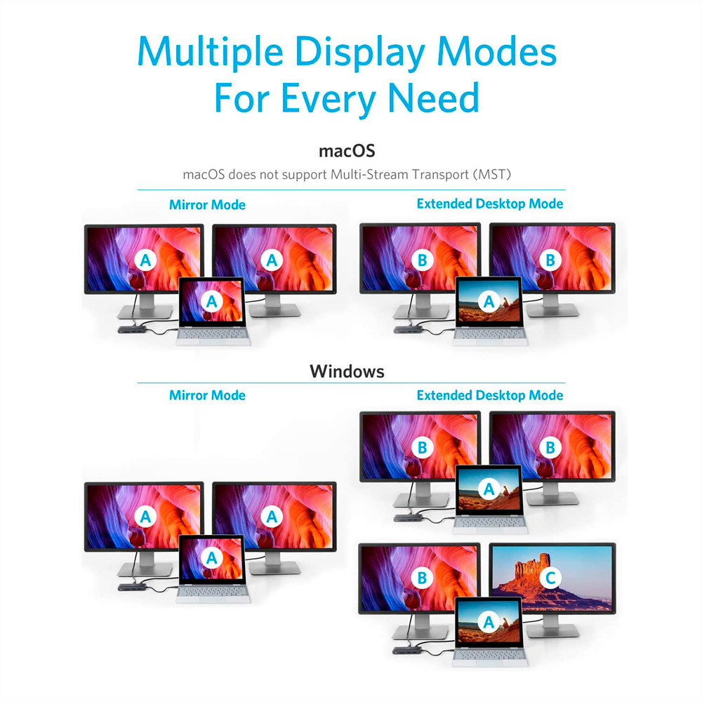 Anker - Hub USB-C 8 en 1 - Admite la carga PD100W - Transferencia de datos de 5Gbps - Admite resolución 4K@60Hz - 2xUSBA, USBC, 2xHDMI, SD, MicroSD, Ethernet