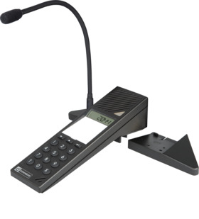 Terminal básico con micrófono de cuello de cisne cardioide, teclado estándar con teclas "T" y "X" y tres teclas de función para la conexión de hasta cuatro módulos de teclado EM 301 o EM 302.