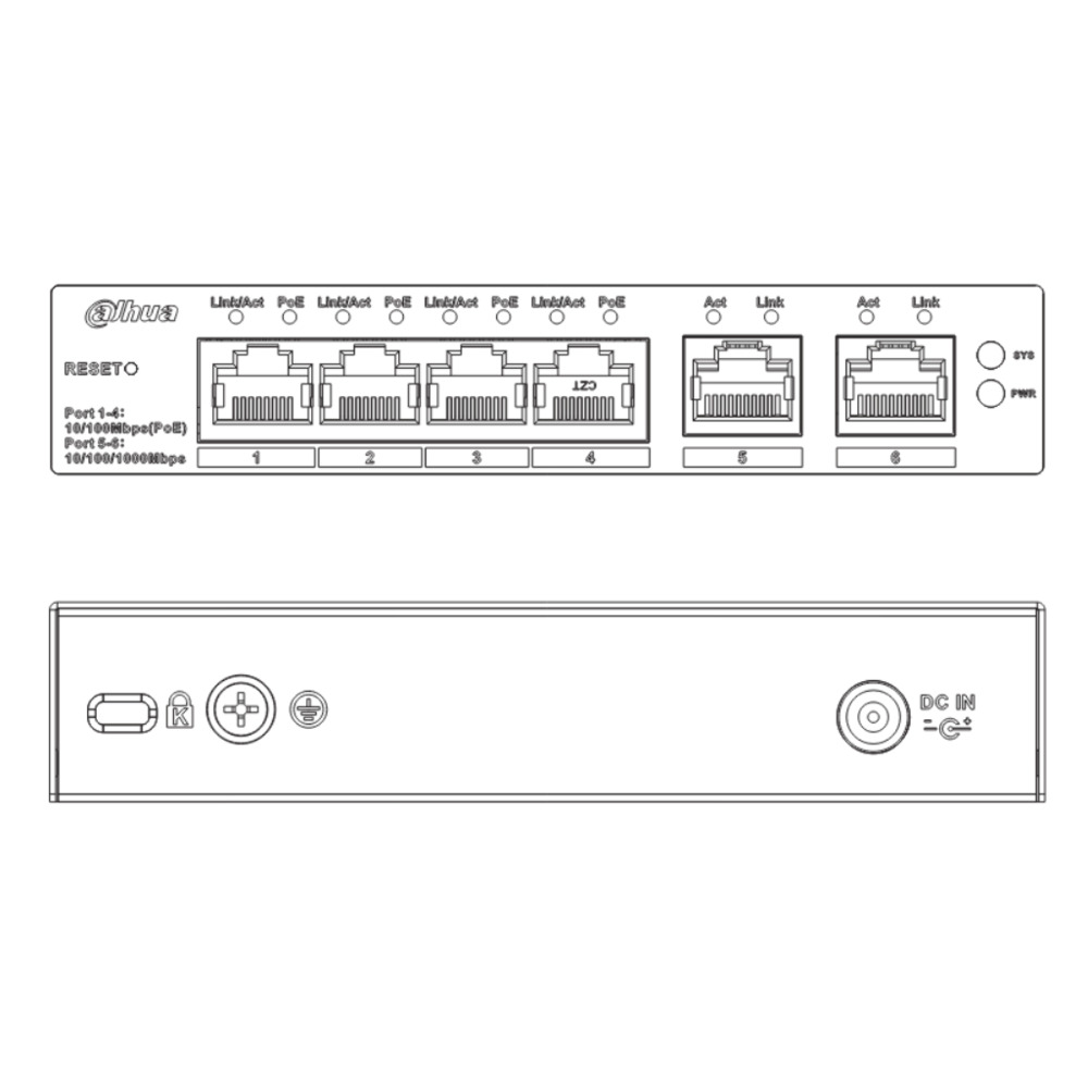 Dahua CS4006-4ET-60 Switch PoE 4 puertos 10/100 + 2RJ45 Uplink Gigabit 60W Gestionable en Cloud Layer2