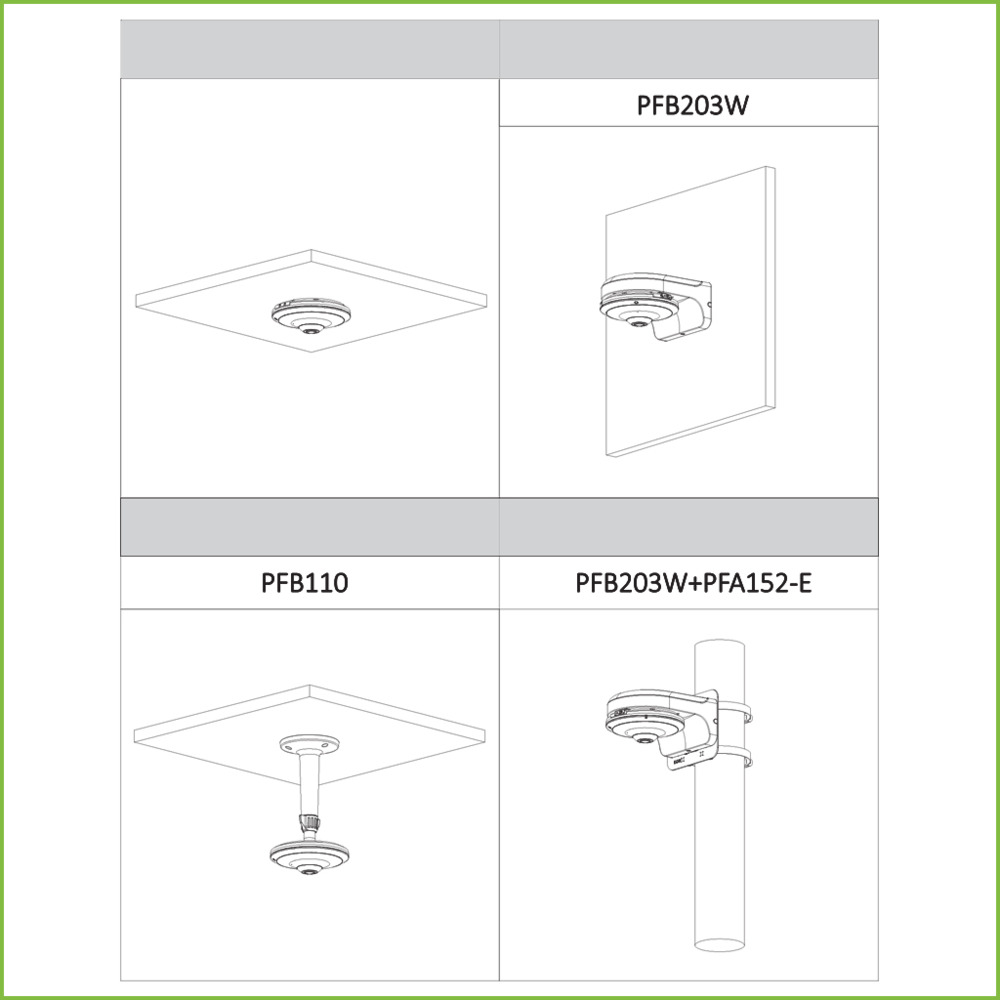 envolvente de 360° (montaje en techo) o vista panorámica de 180° (montaje en