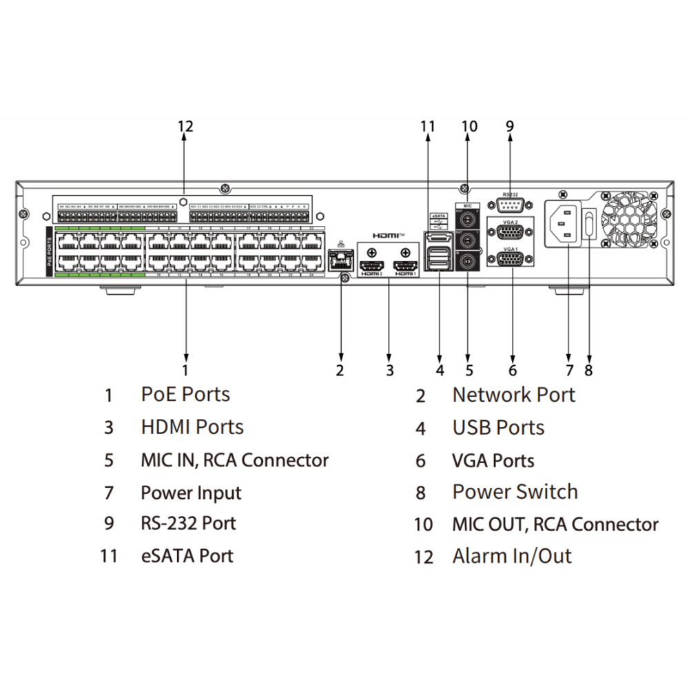 Dahua NVR5424-24P-EI NVR 24ch 384Mbps H265 2xHDMI 24PoE 4HDD E/S AI
