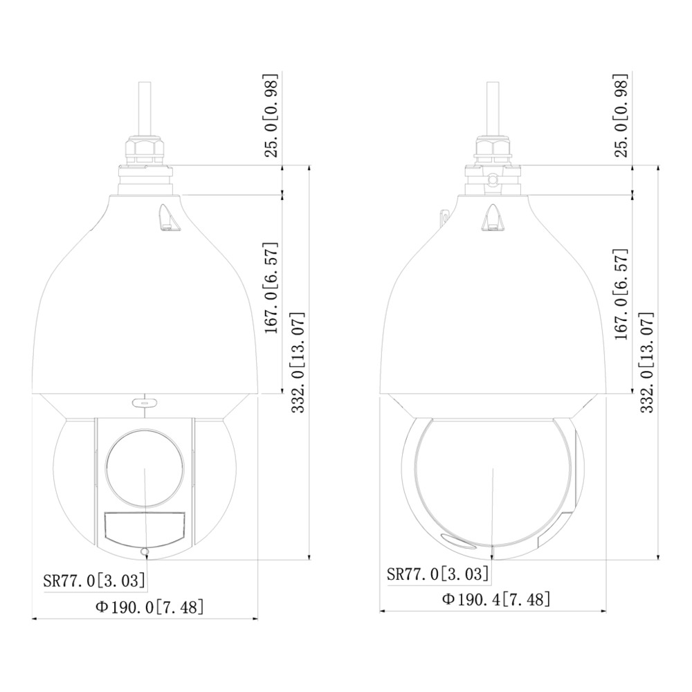 - Auto 25xZoom 5.4-135mm (H:58.5°-2.8°; V:33.2°-1.5°; D:67.5°-3.2°),