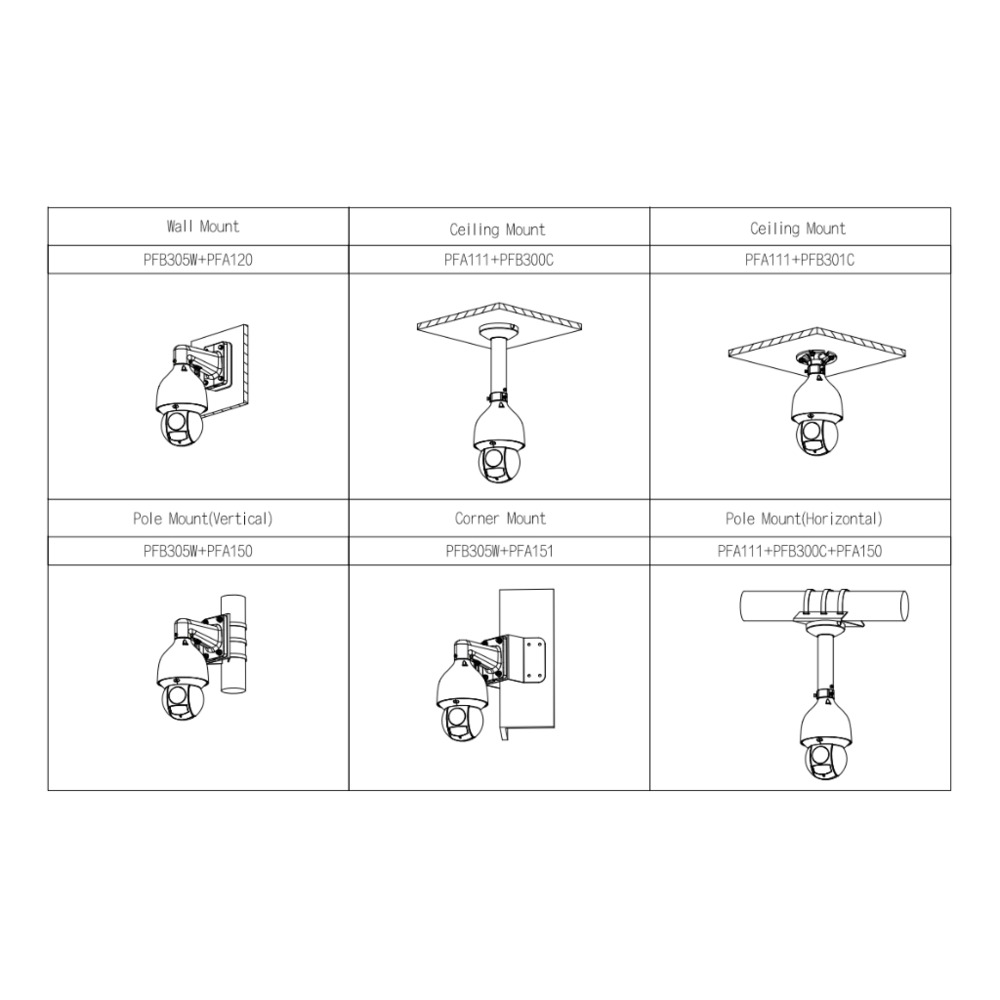 Pan: 0 ~ 360º, Tilt: -15 ~ 90º, auto flip 180º.