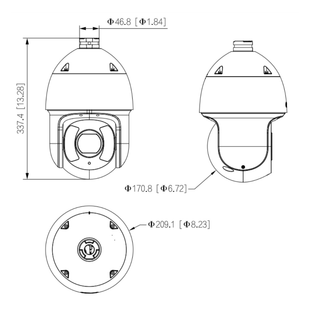 Pan: 0 ~ 360º, Tilt: -20 ~ 90º, auto flip 180º.