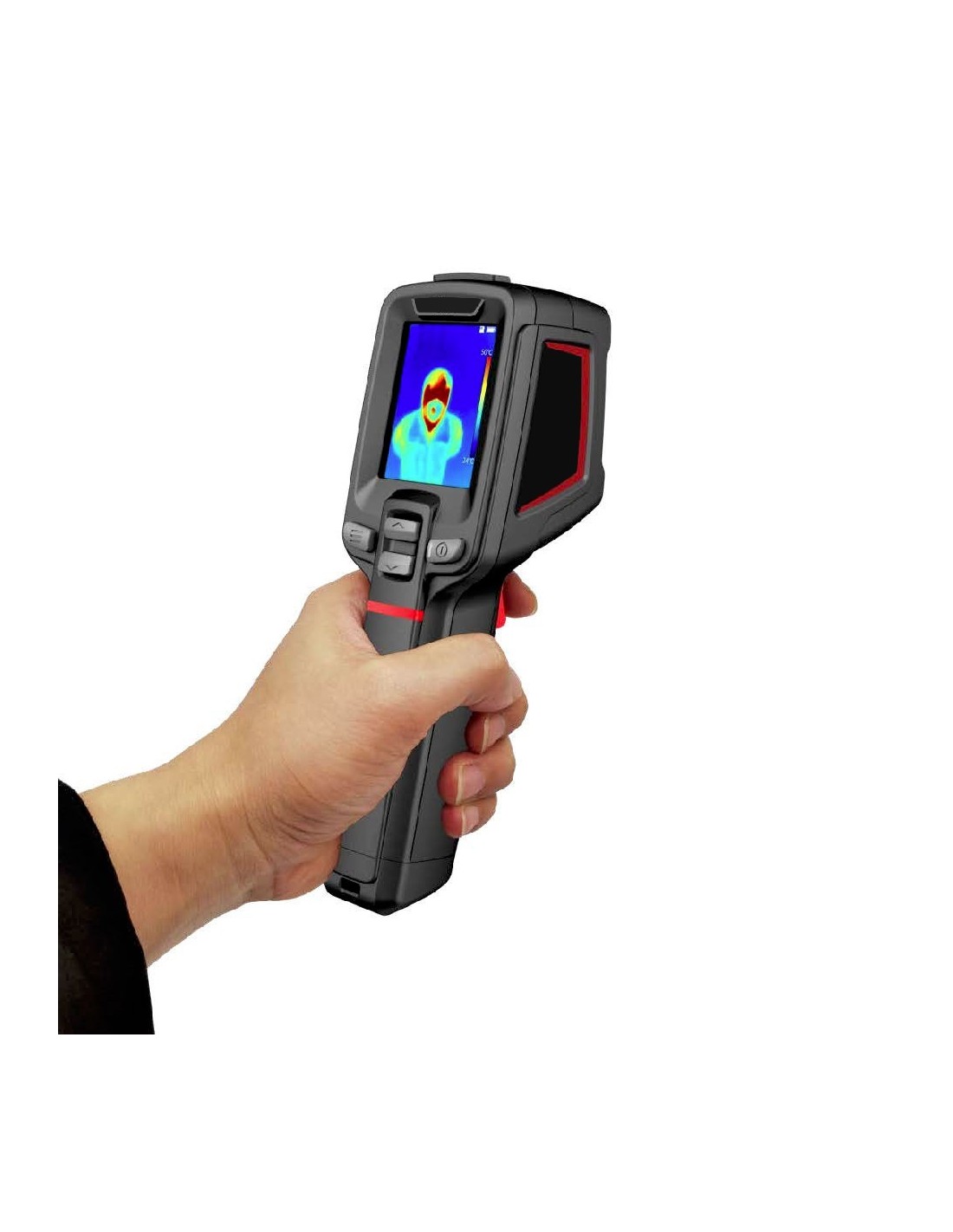 Cámara térmica para medición de temperatura corporal y detección de fiebre. Resolución térmica de 120 x 90, lente térmica de 2,28 mm. Display LCD. Alarma por exceso de temperatura (valor predeterminado de 37,3°C). Puerto USB-C. Ranura tarjetas TF. IP54. Batería recargable de ión litio.