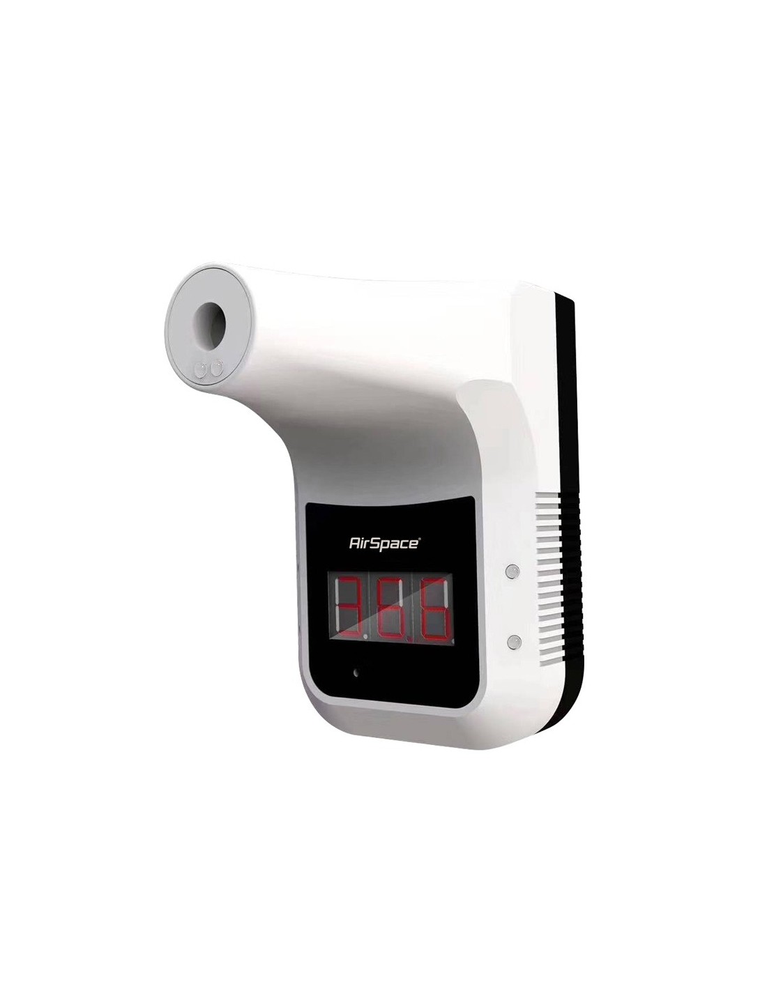 Termómetro infrarrojo AirSpace. Mide la temperatura de la frente de las personas. Medición rápida. Alta precisión de ±0,2°. Distancia de detección de 5 ~ 10 cm. Función de alarma. Hasta una semana en modo en espera. Unidades °C y °F disponibles. Modo de ahorro de energía. Alimentación por USB (con el cable incluido) o por batería (no incluida)