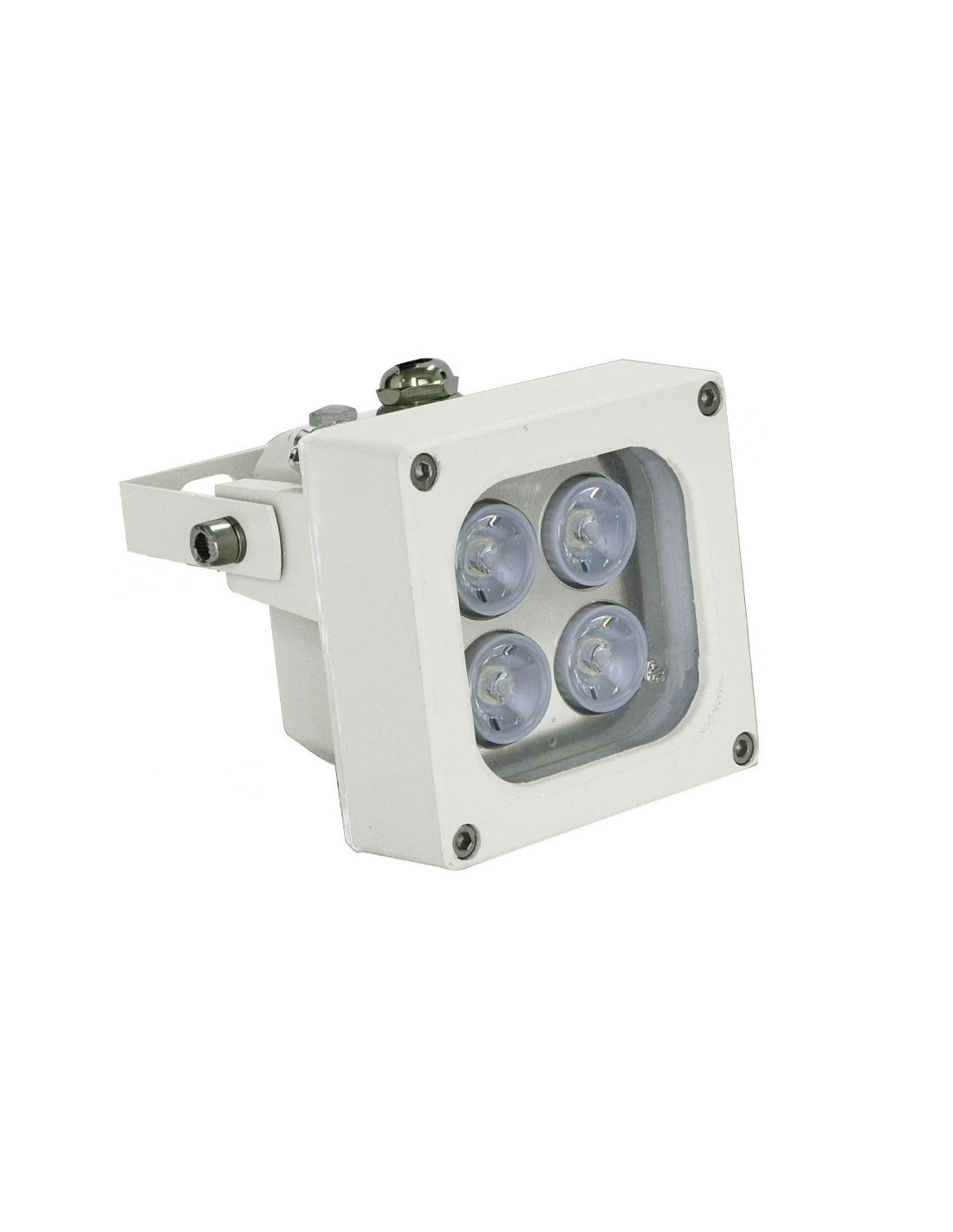 Foco de iluminación infrarroja. Alcance de 80 metros, 45°. 4 LEDs IR dot-matrix Epistar. Protección IP66. Color blanco. Incluye soporte de lira orientable
