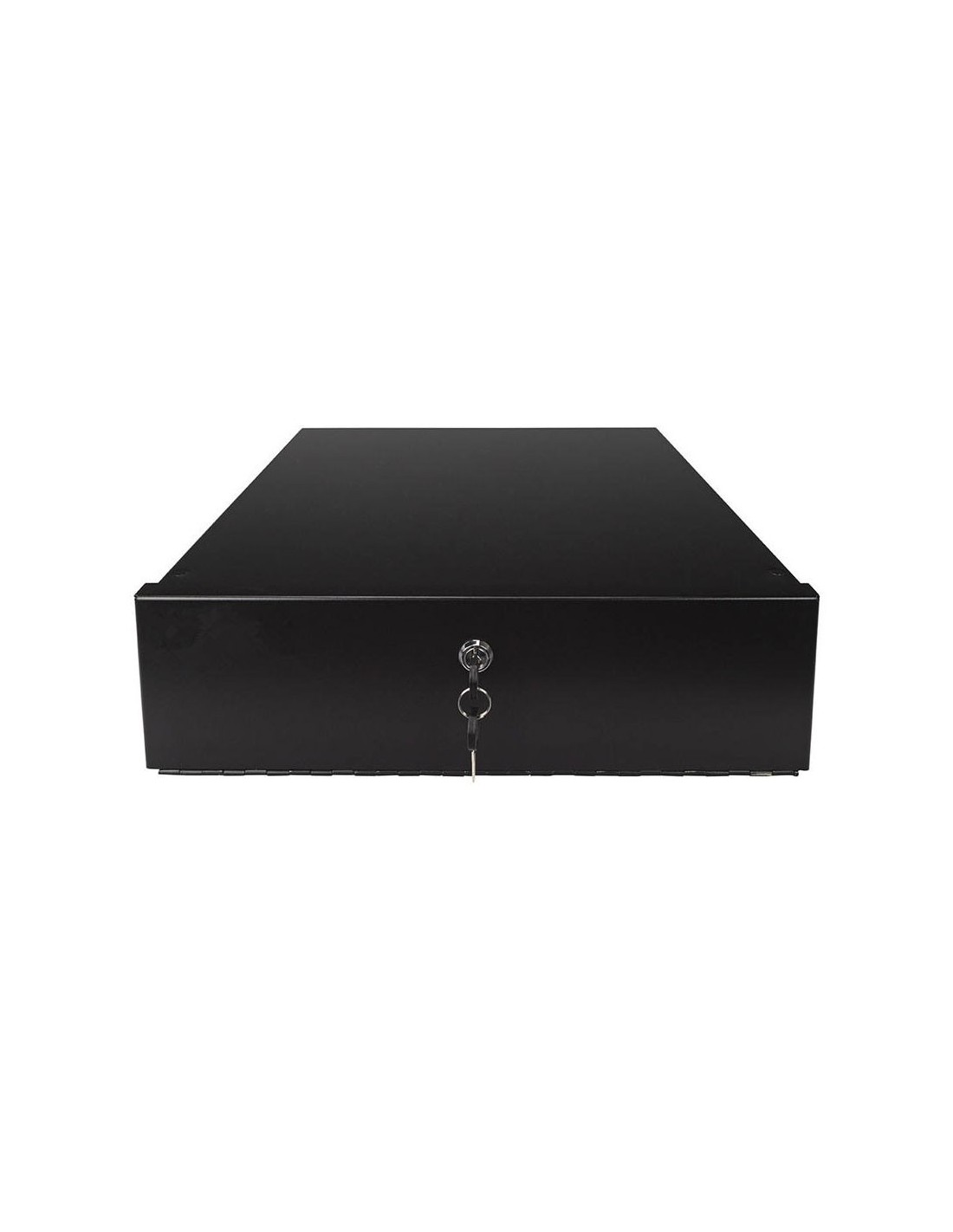 Caja de seguridad para DVR en color negro. Incluye soporte en L. Fabricada en acero SPCC. Diseñada para mantener el grabador seguro en entornos profesionales