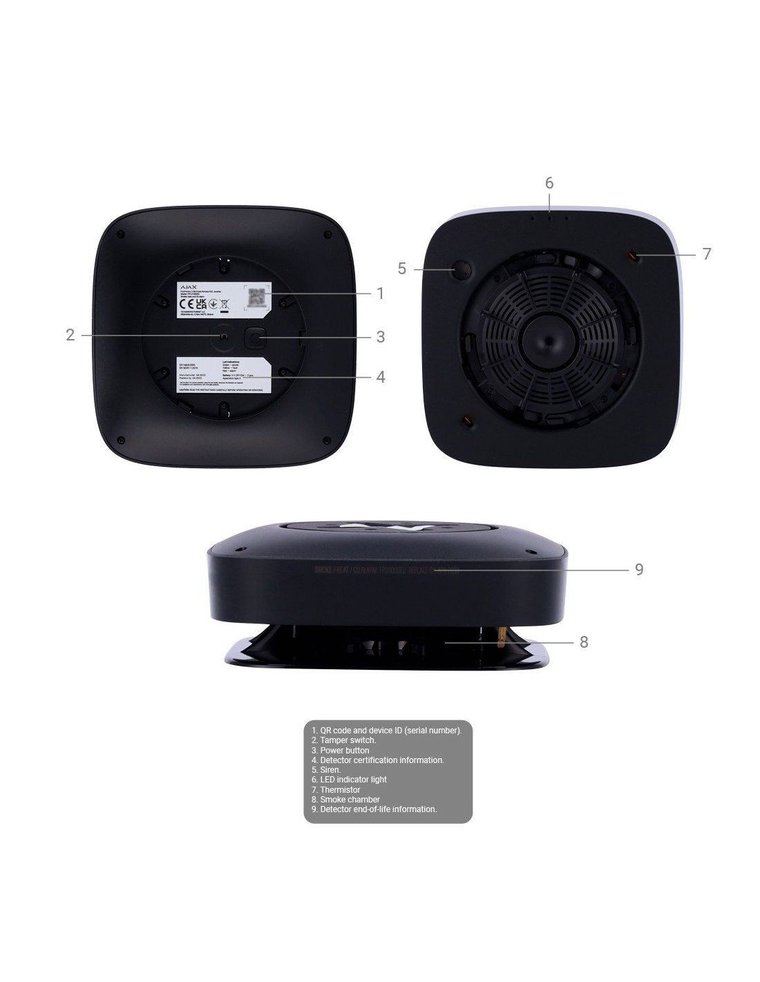 AJAX AJ-FIREPROTECT2-HSC-SB-B Detector de humo, termovelocimétrico y CO - Baterías integradas - Inalámbrico 868 MHz Jeweller - S