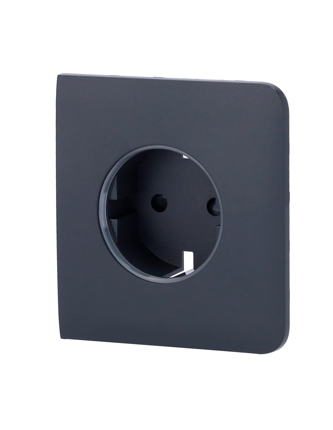 Tapa lateral para enchufe inteligente tipo F - Compatible con AJ-OUTLETCORE-SMART - Indicador LED sobre estado del enchufe y consumo - Botón táctil para control manual - Retroalimentación LED - Color grafito