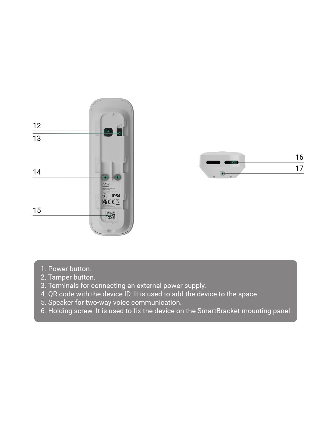 Doorbell 4 MP con IA integrada - Detector PIR alcance hasta 4 m - Audio bidireccional con cancelación de ruido - Visión nocturna IR, alcance de hasta 6 m - Wi-Fi 2.4 GHz con respaldo de Jeweller/Wings - Color gris