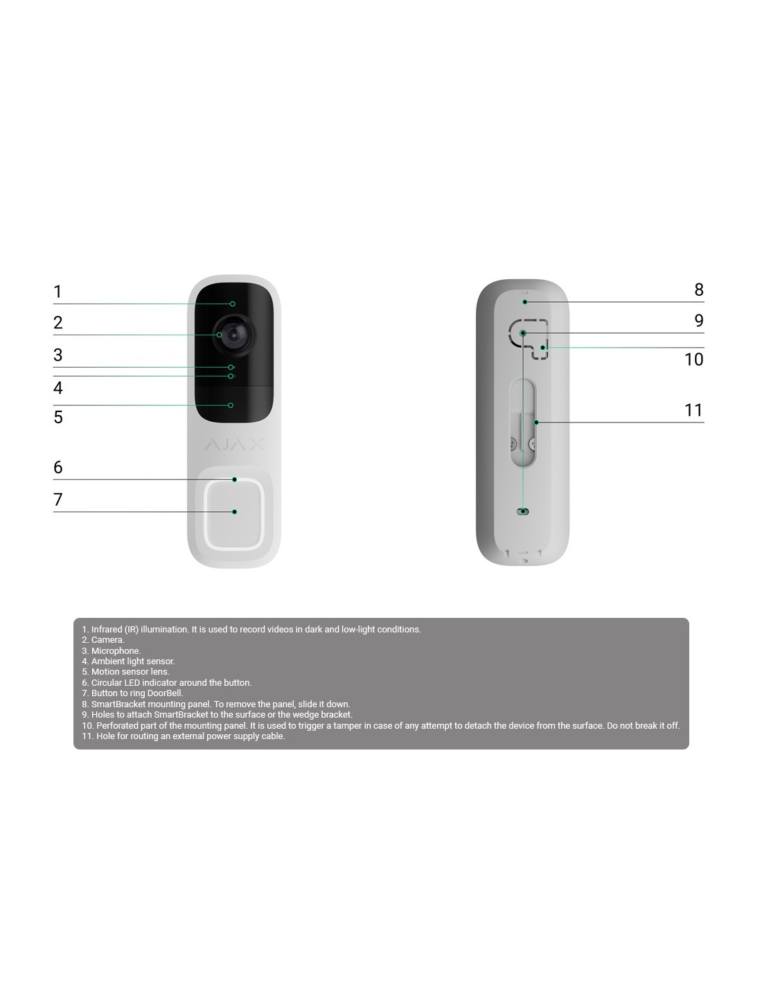 Doorbell 4 MP con IA integrada - Detector PIR alcance hasta 4 m - Audio bidireccional con cancelación de ruido - Visión nocturna IR, alcance de hasta 6 m - Wi-Fi 2.4 GHz con respaldo de Jeweller/Wings - Color blanco