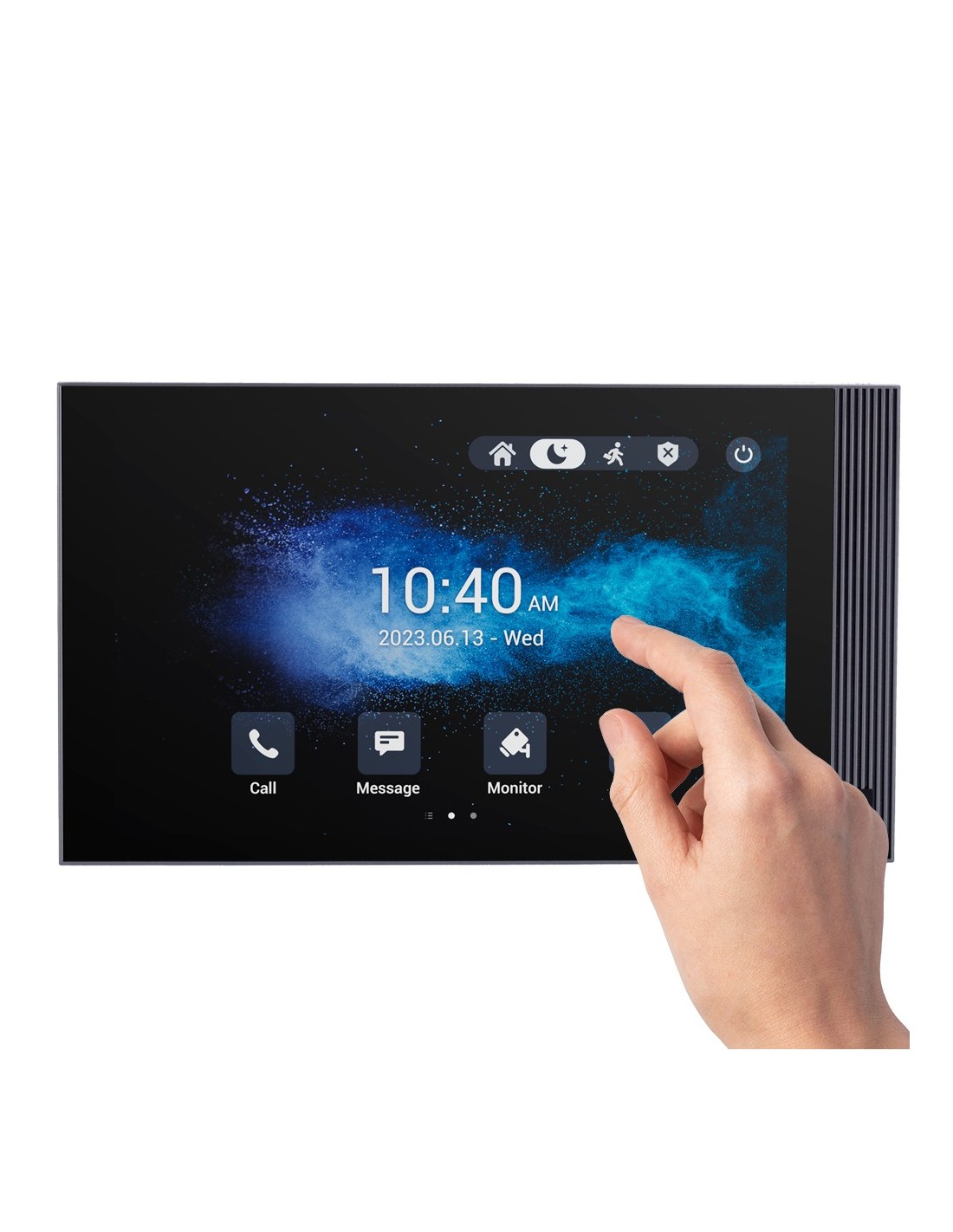 Este modelo cuenta con una pantalla táctil de 8" que facilita la operación por parte del usuario, con tecnología IPS que ofrece una mayor calidad de imagen. Además, dispone de sistema operativo Android, permitiendo instalar aplicaciones de terceros con Servicios de Google para controlar el sistema de intrusión, SmartHome o CCTV de la instalación, entre otros.