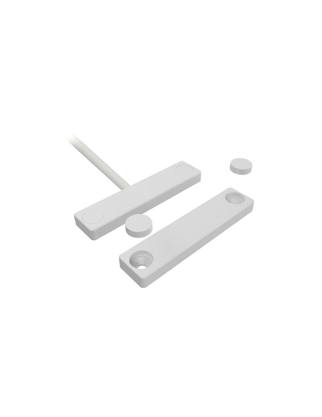 Contacto magnético de superficie. Diseño fino. GAP de 37 mm. No se recomienda su uso con materiales magnéticos. NC. 2 metros de cable. Incorpora 2 resistencias de 4k7ohmios. Color blanco. EN50131-2-6 de Grado 2.