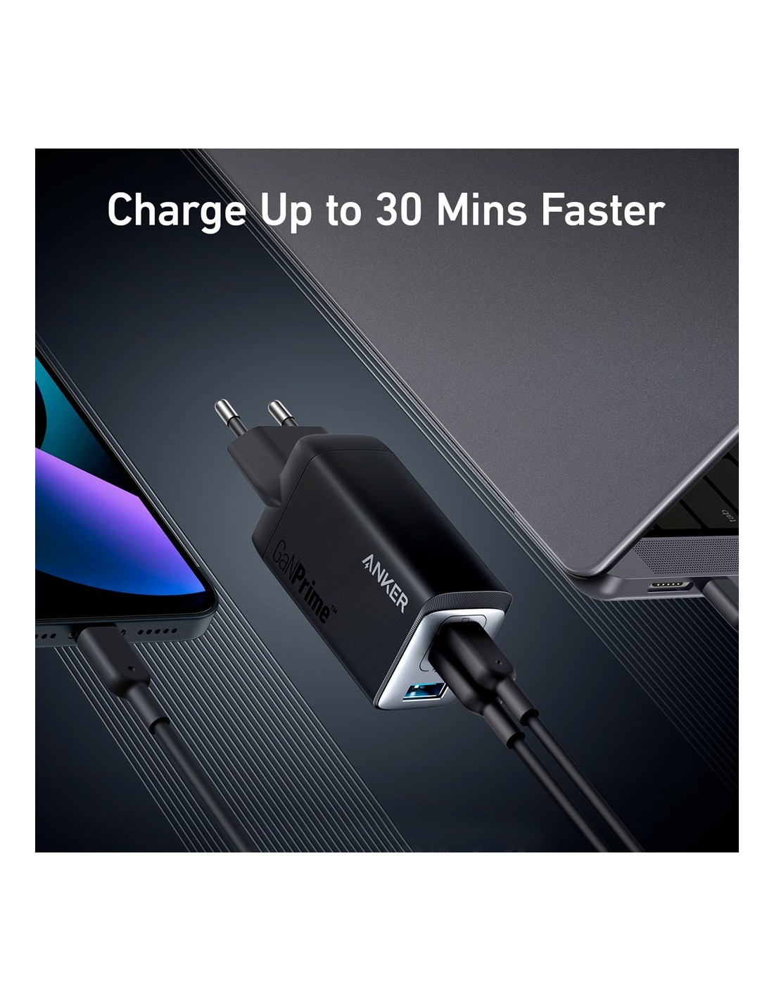 ANKER ANK-735-WCHARGER-65W1A2C-B Anker - Cargador USB - Potencia 65W | Con tecnología GaNPrime - Carga rápida - Salidas 1x USB-A