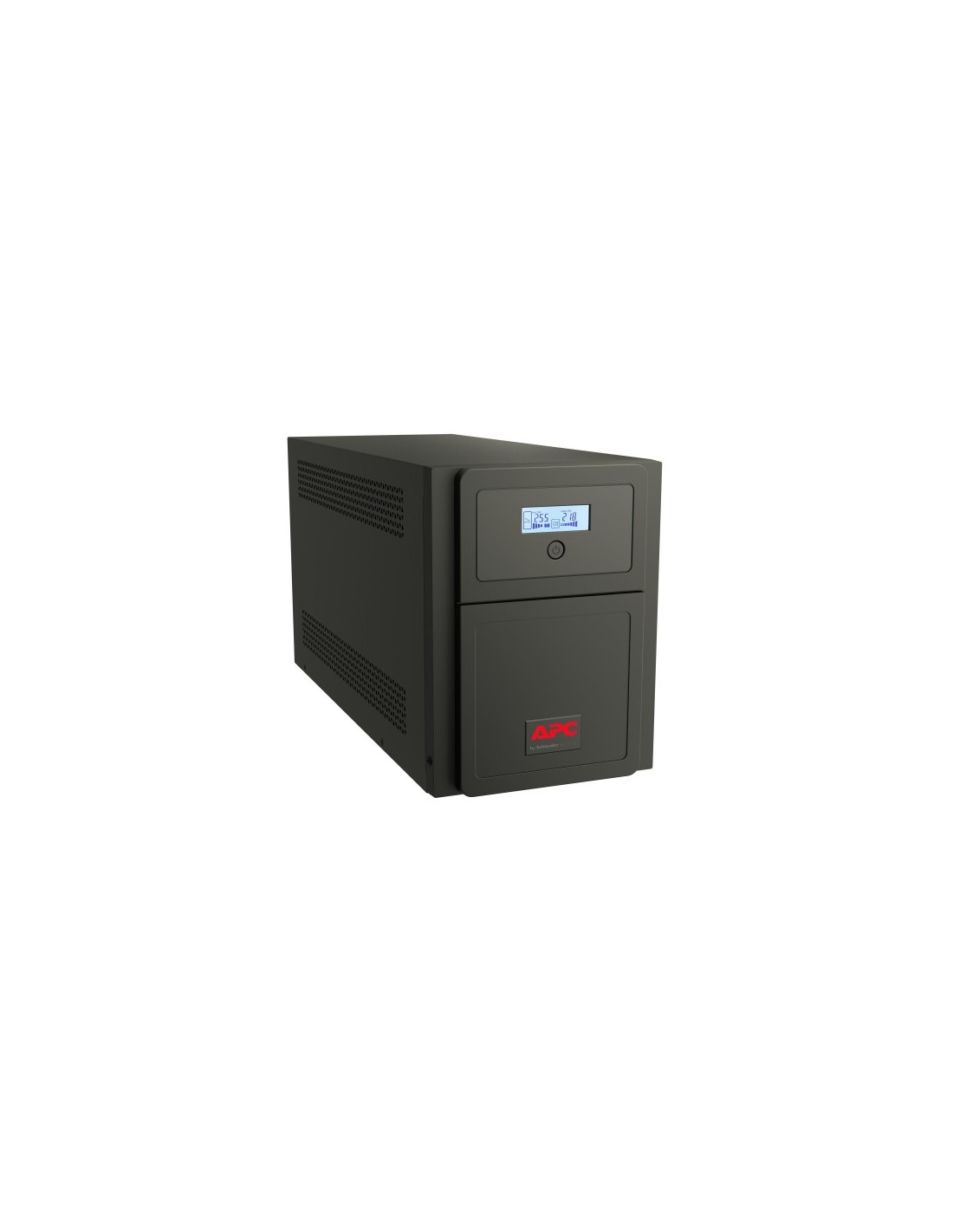 APC Easy UPS SMV. Topología UPS: Línea interactiva, Capacidad de potencia de salida (VA): 3 kVA, Potencia de salida: 2100 W. Tipo de salida AC: IEC 320, Cantidad de salidas AC: 6 salidas AC. Tecnología de batería: Sealed Lead Acid (VRLA), Capacidad de la batería: 9 Ah, Voltaje de la pila: 12 V. Factor de forma: Torre, Color del producto: Negro, Tipo de visualizador: LCD. Ancho: 180 mm, Profundidad: 455 mm, Altura: 240 mm