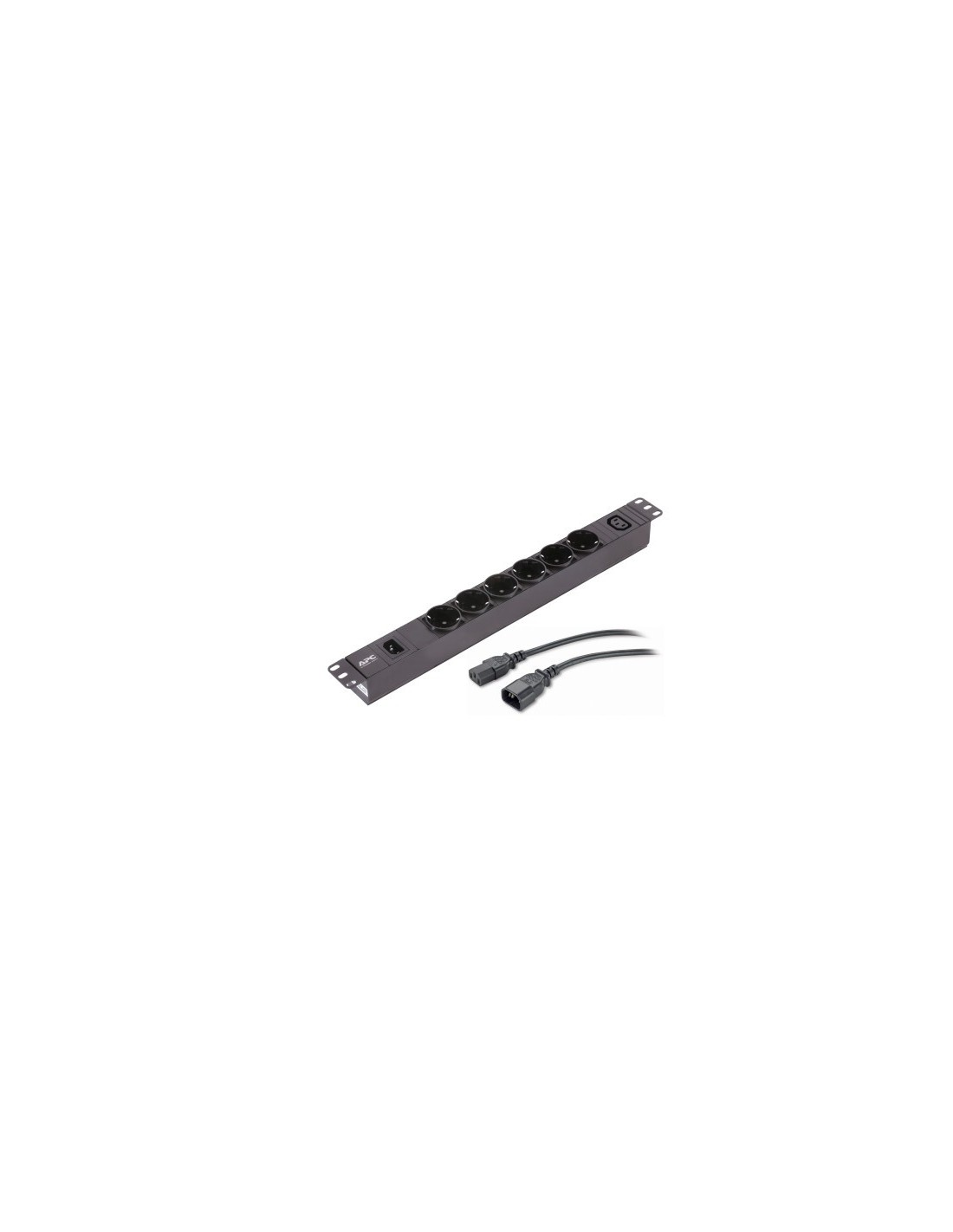 APC EPDU1010B-SCH. PDU tipos: Básico, Capacidad del rack: 1U, Tipo: Monofásico. Cantidad de salidas AC: 7 salidas AC, Tipo de salida AC: C13 acoplador, Tipo F, Conector: C14 acoplador. Longitud de cable: 2,5 m. Voltaje nominal de entrada: 230 V, Máxima corriente: 10 A, Potencia máxima: 2300 W. Ancho: 482 mm, Profundidad: 44,4 mm, Altura: 44,4 mm