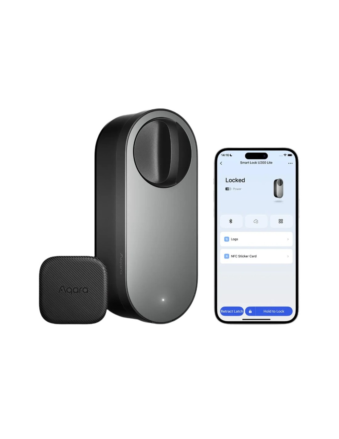 Aqara Cerradura inteligente U200 Lite Negro - Matter over Thread / Bluetooth & NFC - Requiere AQARA HUB M3 / Border Router - Pegatina NFC (DOT) / Apertura remota - Batería Recargable - Soporta Apple Homekit, Google, Alexa