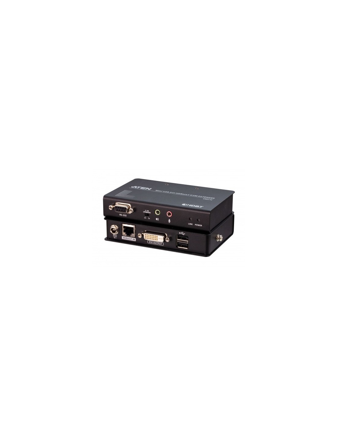 El ATEN CE611 es un extensor de KVM HDBaseT™ DVI USB que integra las últimas tecnologías HDBaseT™ para transmitir señales de vídeo DVI 1920 x 1200, audio estéreo, USB y RS-232 a una distancia de hasta 100 metros a través de un solo cable Cat6 / 6a / cable Cat 6 ATEN 2L-2910. Este asequible extensor presenta un diseño compacto que incluye interfaces de DVI/audio, puertos USB 2.0 de máxima velocidad y una consola serie que responde a la mayoría de demandas de consola y control de KVM. Con una sencilla instalación con un solo cable que admite varias señales, el CE611 resulta ideal para aplicaciones en las que se necesita práctico acceso remoto, como centros de control de transporte, instalaciones médicas, almacenes industriales y estaciones de trabajo ampliadas.\n\nContenido del paquete\n\n- 1x extensor de KVM HDBaseT DVI mini USB CE611L (unidad local)\n- 1x extensor de KVM HDBaseT DVI mini USB CE611R (unidad remota)\n- 2x adaptadores de corriente\n- 1x manual de instrucciones