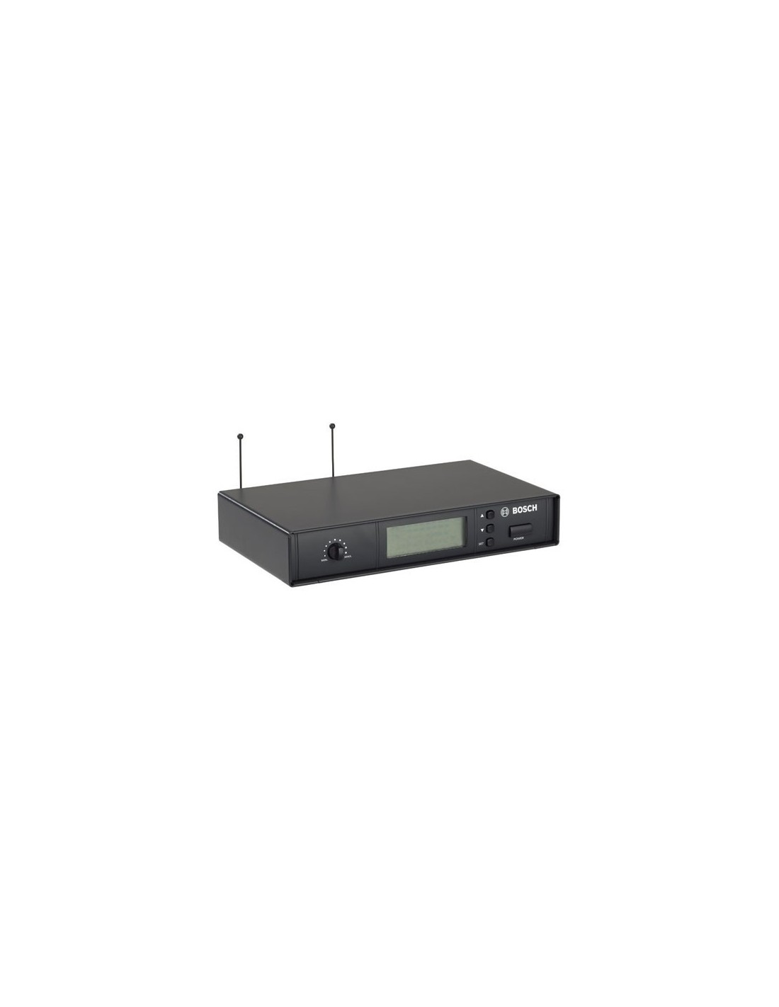 Bosch MW1-RX-F4. Tipo de montaje: Montaje en rack, Frecuencia de operación: 606 - 660 MHz, Cantidad de canales: 193 canales. Tipo de fuente de alimentación: CC, Alimentación: Corriente alterna, CC, Voltaje de entrada: 12 V. Ancho: 211 mm, Profundidad: 152 mm, Altura: 40 mm. Cables incluidos: XLR