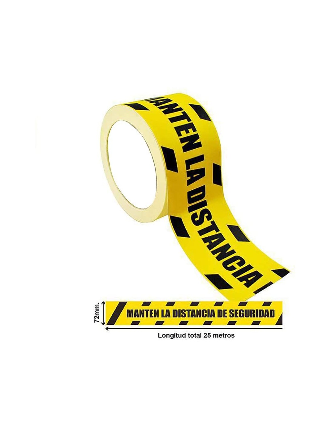 Rollo de Precinto Distancia de Seguridad | - Cinta adhesiva en PVC de gran calidad | Mantenga la distancia de Seguridad | Longitud 25 m | ancho 72 mm | Ideal para señalizar locales | Ideal para cumplir normativa de distanciamiento