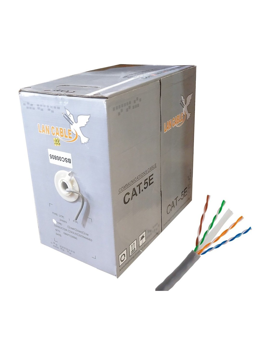 Bobina en caja de 305m | cable | UTP CAT5e | rígido | Cable | CAT5e | rígido CCA | Diámetro 5.5 mm | Color cubierta | Gris | Conductor 24AWG SOLID * 8C