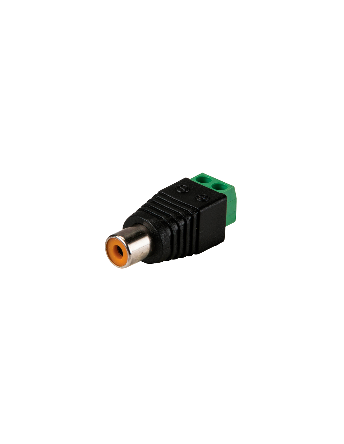 Conector hembra RCA con salidas +/- de 2 terminales | Salida +/- de 2 terminales | Largo 36 mm | Ancho 13mm | Peso 7g. | Servidos en packs de 10 unidades