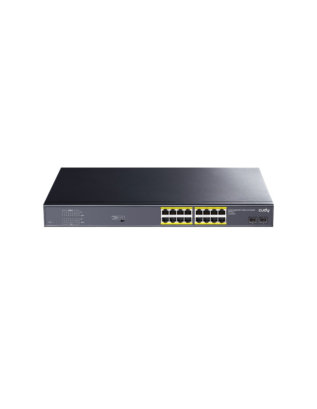 - Switch PoE+ no gestionable Cudy de 16 puertos Gigabit y 2 ranuras SFP