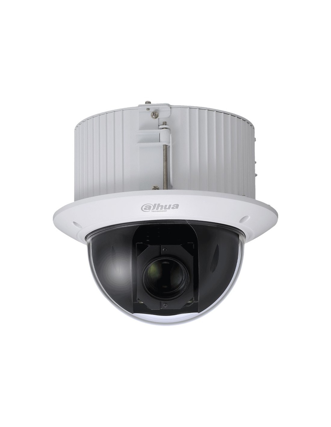 Domo PTZ IP Dahua WizSense. 4MP@25/30ips, Smart H.265+. ICR, 0,005/0,0005 lux. Zoom óptico 32X (4,8~154 mm). WDR 120dB, 2D/3D-DNR, ROI. Pan&Tilt: 360°@350°/s (H); 90°@250°/s (V); 300 presets. Protección perimetral, detección facial, SMD y autotracking. 1 entrada / 1 salida de audio. 2 entradas / 1 salida de alarma. Ranura MicroSD, RJ45, Onvif, IK10, PoE+. Instalación empotrada de interior. Incluye alimentador