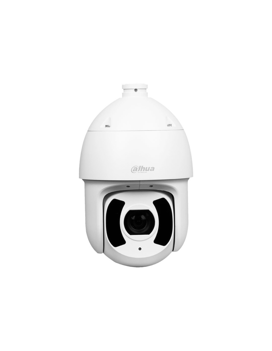 Domo PTZ IP Dahua WizSense. 2MP@25/30ips, Smart H.265+. ICR, 0,005/0,0005 lux, Smart IR 250m. Zoom óptico 32X (4,8~154 mm). WDR 120dB, 2D/3D-DNR, ROI. Pan&Tilt: 360°@260°/s (H); 90°@120°/s (V); 300 presets. Protección perimetral, detección facial, SMD 4.0, Autotraking. 1 entrada / 1 salida de audio. 7 entradas / 2 salidas de alarma. Ranura MicroSD, RS485, RJ45, Onvif. IP67, IK10, Lightning-proof 8KV. 12V CC / PoE+. Incluye soporte y alimentador
