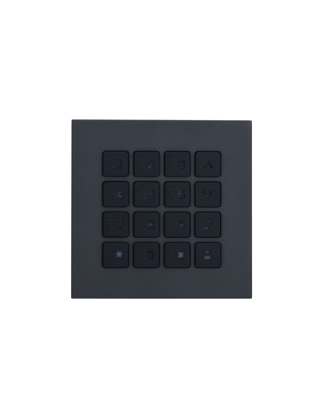 Módulo Dahua con teclado mecánico. Cuerpo de aluminio. Protección IP65 e IK07. Alimentación desde otros módulos. Instalación empotrada o en superficie. Ideal para control de acceso por código