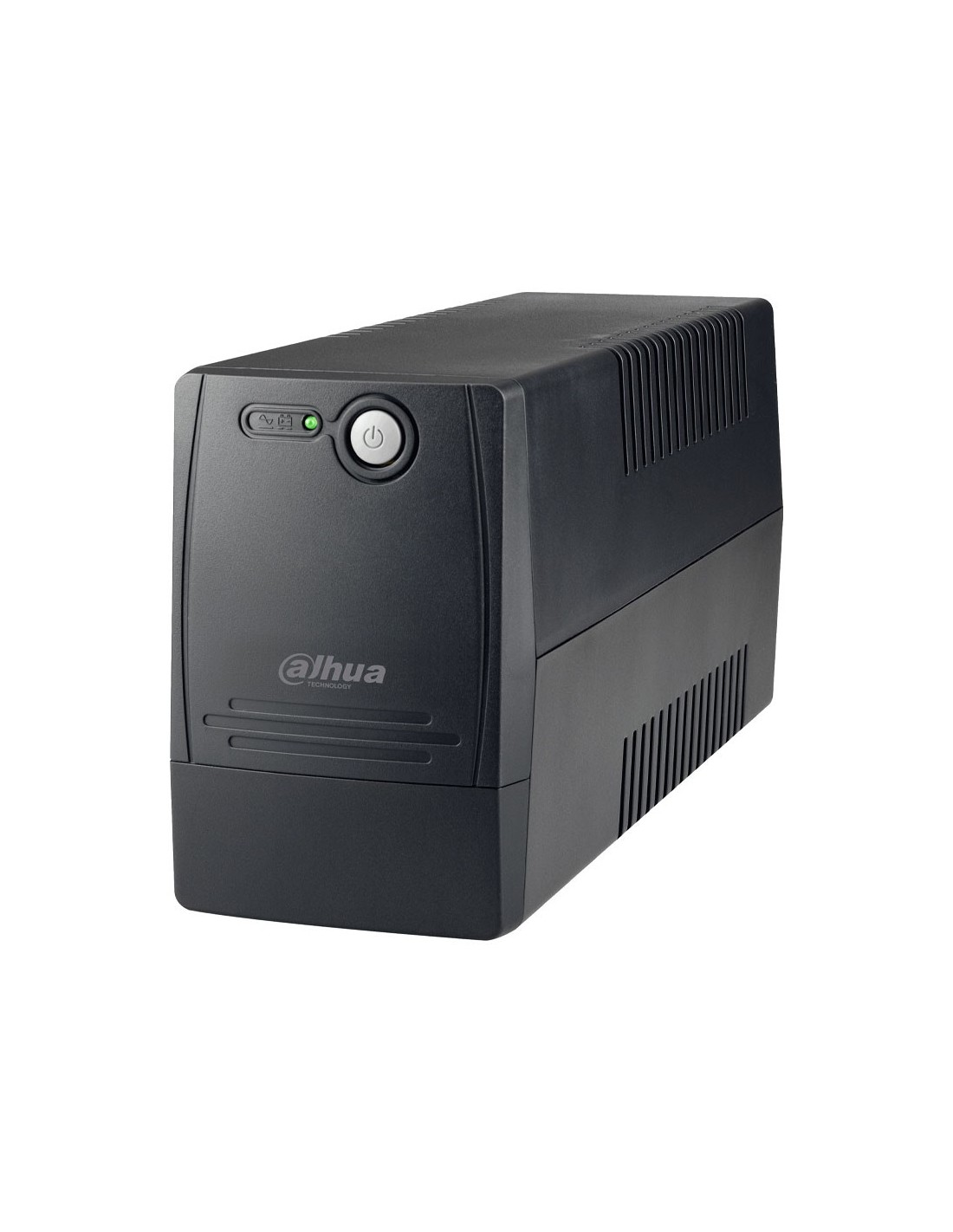 UPS línea interactiva Dahua de 600VA/360W. Rango de entrada amplio con AVR para estabilización. Batería interna de 12V/7Ah con autonomía de minutos. Protección completa contra sobrecarga, sobrevoltaje e infravoltaje. Compacto y silencioso