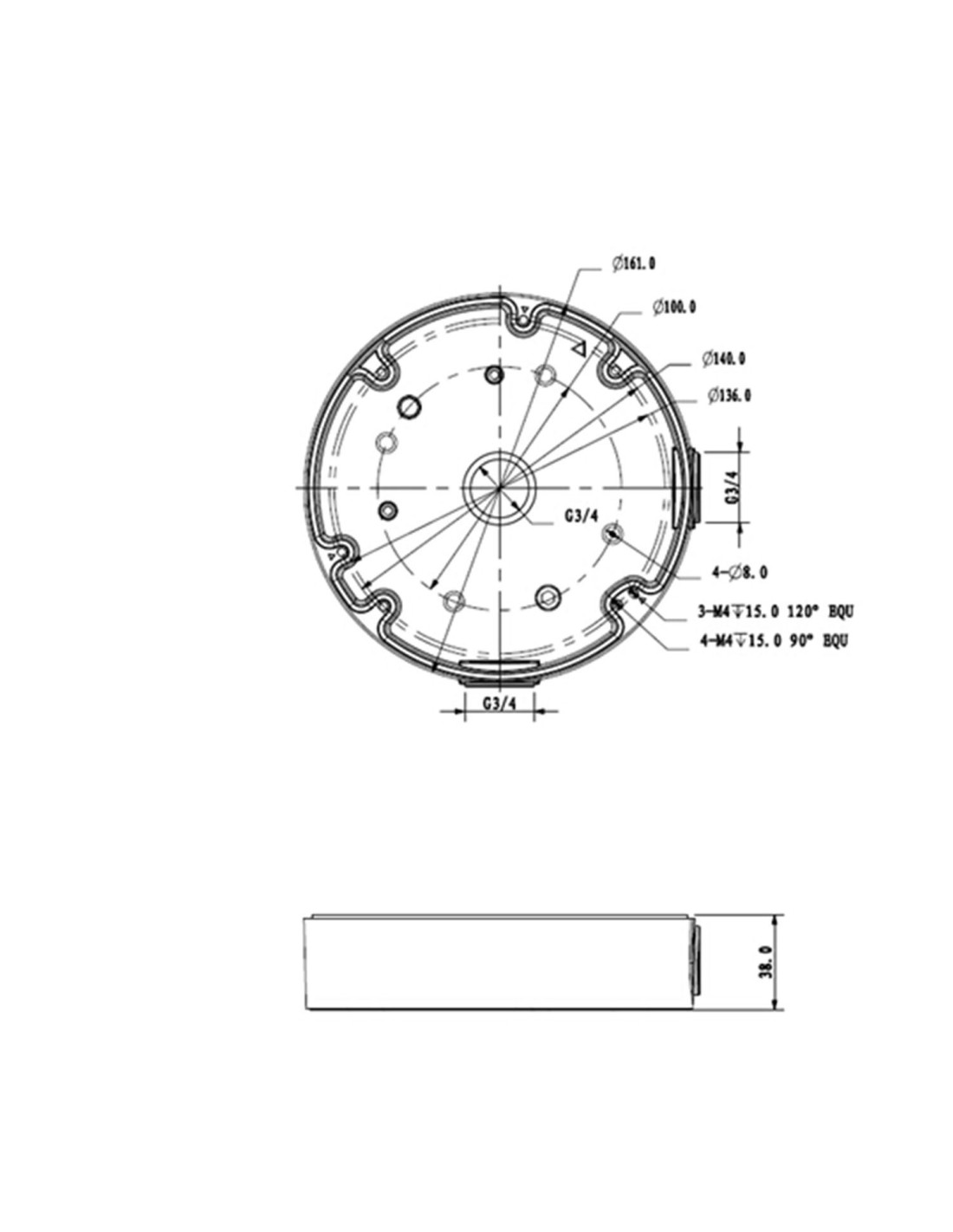 DAHUA PFA138 Caja de conexiones - Para cámaras domo - Apto para uso exterior - Instalación en techo o pared - Color blanco | 38(