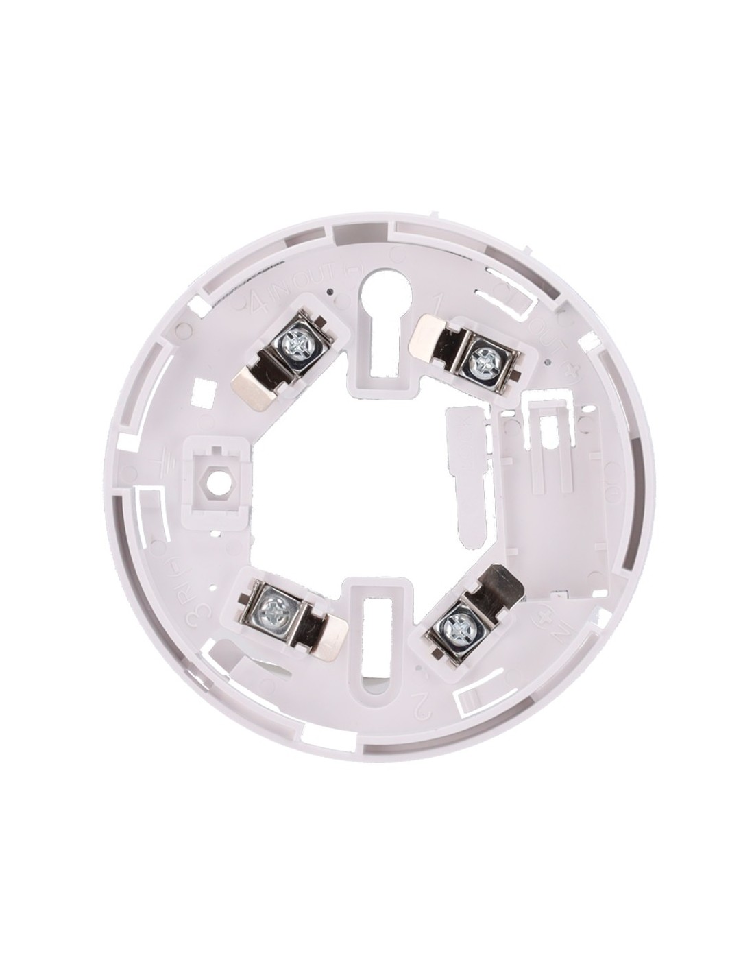 Base de perfil bajo - Compatible con detectores V2 y base alta - Necesaria para instalación de detector - Marca de montaje fácil - Posibilidad de bloquear el detector a la base - Compatible con piloto indicador de acción