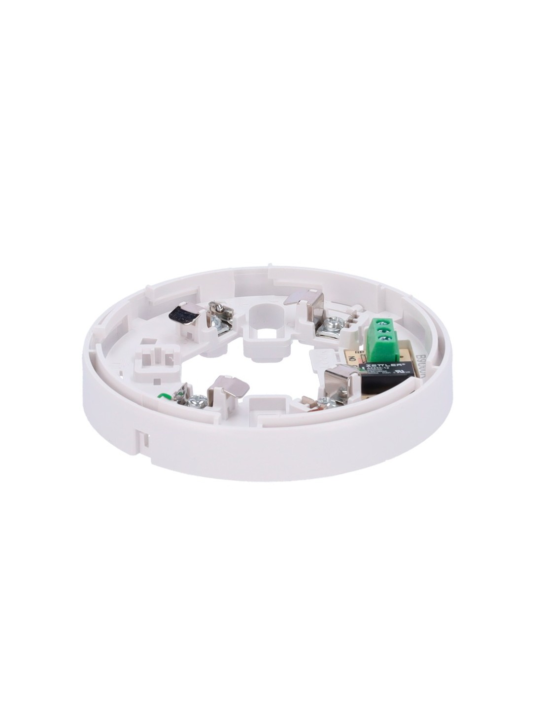Base de perfil bajo con relé - Hasta 12VDC 0.5A / Terminal NO/NC/C - Compatible con detectores V2 y base alta - Necesaria para instalación de detector - Marca de montaje fácil - Posibilidad de bloquear el detector a la base - Compatible con piloto indicador de acción