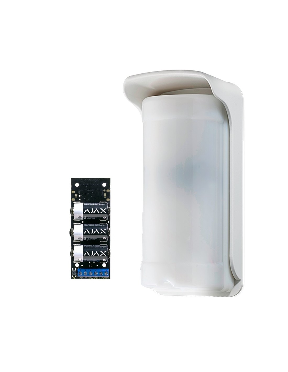 Detector exterior Duevi bajo consumo - Integrado con Ajax Transmitter (incorporado) - Doble PIR por cada lado y doble PIR frontal - Cobertura total 180º / Antimasking - Alimentación suministrada por Transmitter - Uso exterior IP54 / Antivandálico IK10