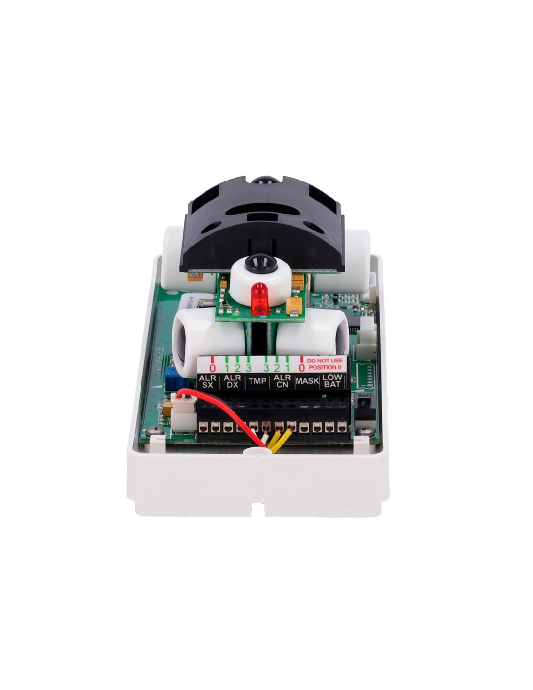 | Configuración DIP Switch | 1 - Antimasking (On/Off) 2- Pre-alarma frontal (On/Off) 3- Walk-test frontal (On/Off) 4- Walk-test derecho (On/Off) 5- Walk-test izquierdo (On/Off) 6- LED alarma (On/Off) 7- Programación por App (On/Off) 8 y 9 - Configuración lados (todos los lados activos / izda, dcha o frontal excluidos) 10- Unificación alarmas en una salida (On/Off) |