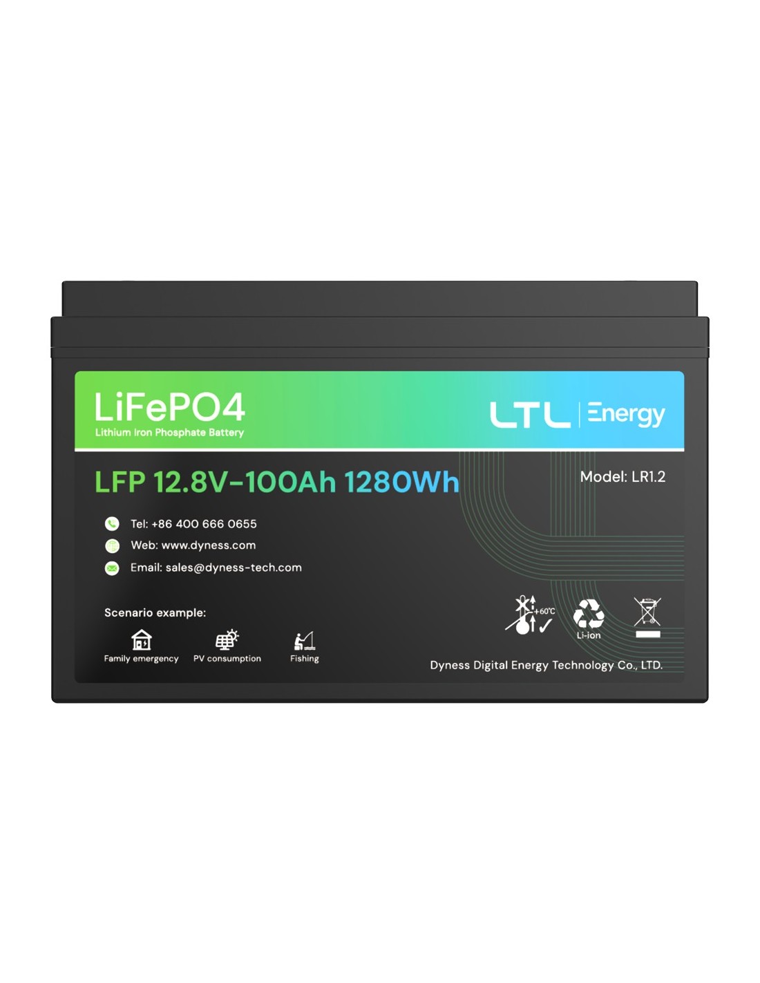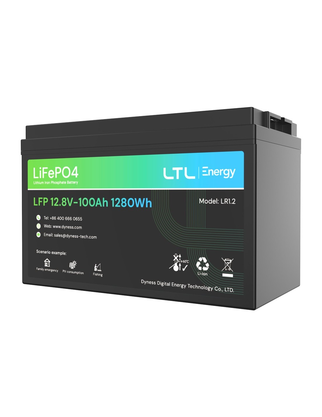 DYNESS DY-AR-1200 Batería estacionaria - Capacidad 1280Wh - LiFePO4 12V / 100Ah - 3000 ciclos de vida - Hasta 16 unidades en par