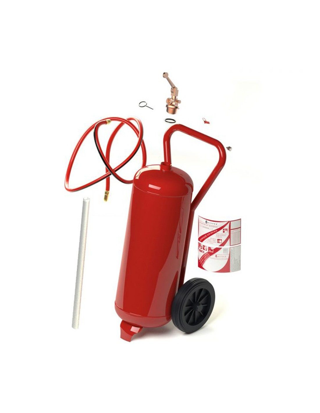 - Extintor con carro de 50 Kg de Polvo ABC con presión permanente nitrógeno.- Protegen áreas de riesgo de fuego clase A, B y C.