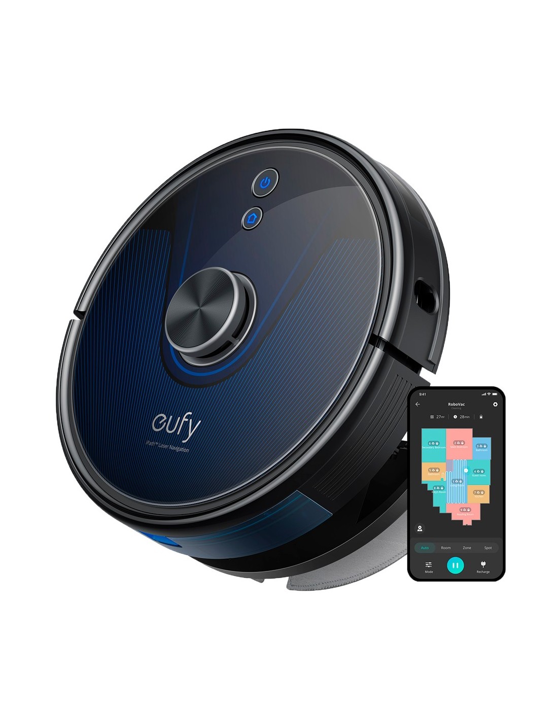 Robot Aspirador Eufy by Anker - Potencia máxima de 3200 Pa - Capacidad del depósito 330 ml Polvo, 200 ml Agua - Tecnología BoostIQ / Navegación láser iPath - Mapas Varios Pisos - Compatible con Amazon Alexa y asistente Google