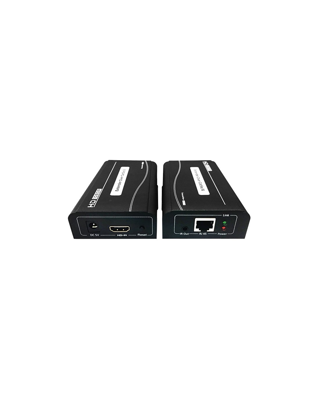 Transmisor - Receptor señales HDMI a través de un estándar Cat5e/6 150m | Vídeo HD | 1080p@60Hz hasta 150m | Admite transferencia de infrarrojos con una frecuencia de 38 KHz | Soporta HDMI 1.3 y HDCP1.2. LED de estado | Compatible con formato de audio DTS-HD/Dolby True HD/PCM/Dolby AC3/DSD | Adaptador corriente 5VDC/1A. Plug & play, sin configuración. Carcasa metálica