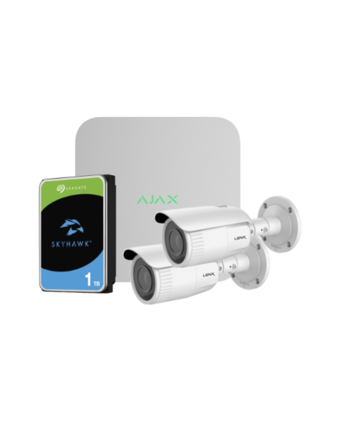 Kit Videovigilancia Ajax-Lenx compuesto por: 1 NVR 8ch Ajax + 2 Cámaras Lenx Tubulares 2MP Varifocales + 1 HDD SATA 1TB