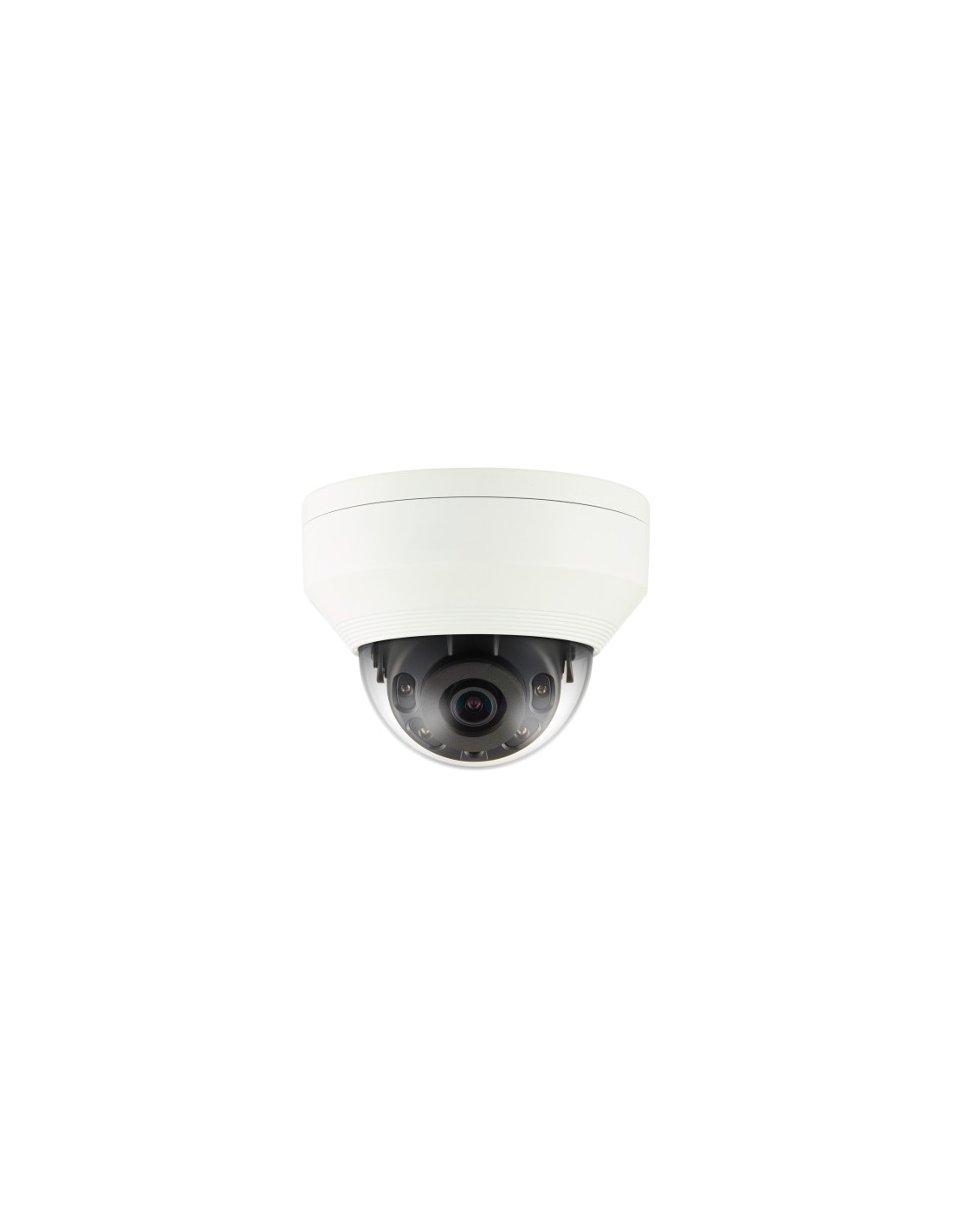 HANWHA VISION. Cámara mini-domo IP 4Mpx óptica fija 2.8mm IR 20 m con ICR WDR H.265 SD IP66 IK1012Vdc/PoE.