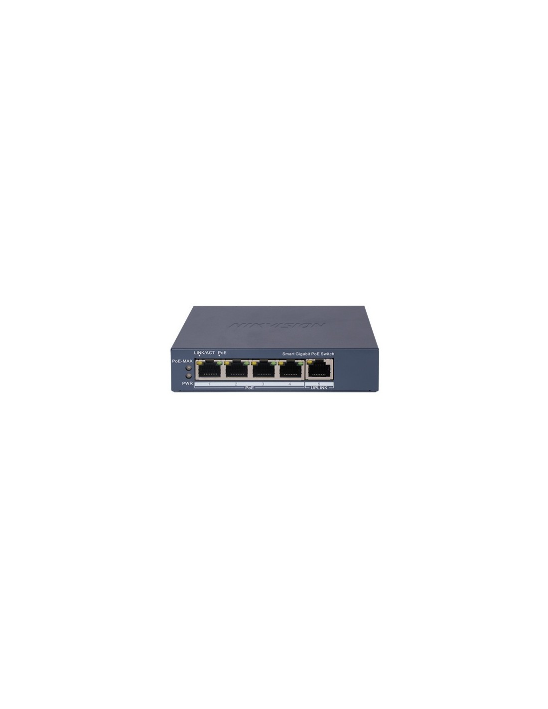 HIKBASIC. Switch PoE de 4 puertos de cobre 10/100/1000 + 1 RJ45 Gigabit. PoE 60W máx (30W x puerto). Gestionable web.