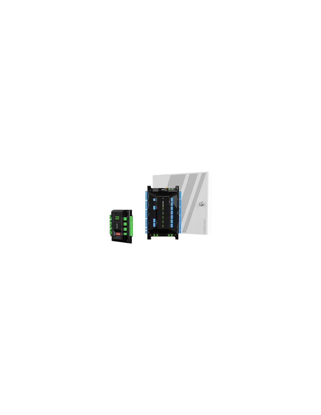 HIKBASIC. Controladora Ultra para 8 puertas con caja y fuente. TCP/IP RS485 y Wiegand. Conformada por (2) DS-K2M002X y (1) DS-K2704X(P).