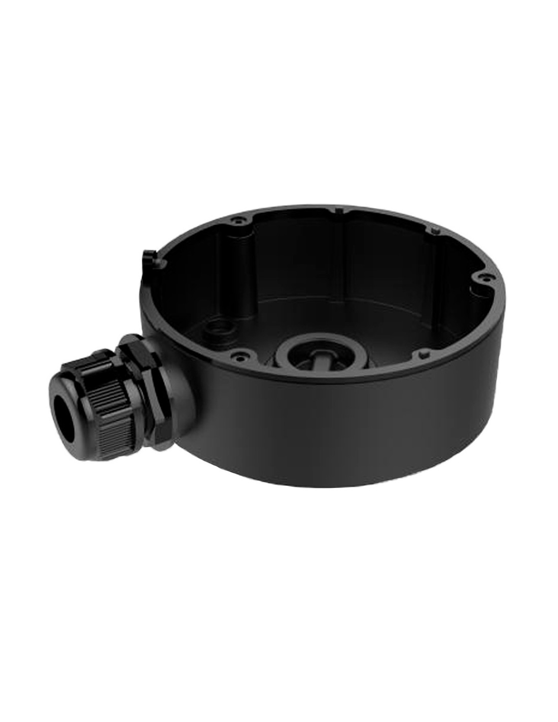 Caja de conexiones - Para cámaras domo - Apto para uso exterior - Instalación en techo o pared - Color negro | 37 (Al) x 111 (Ø) x 141.7 (Fo) mm - Pasador de cables