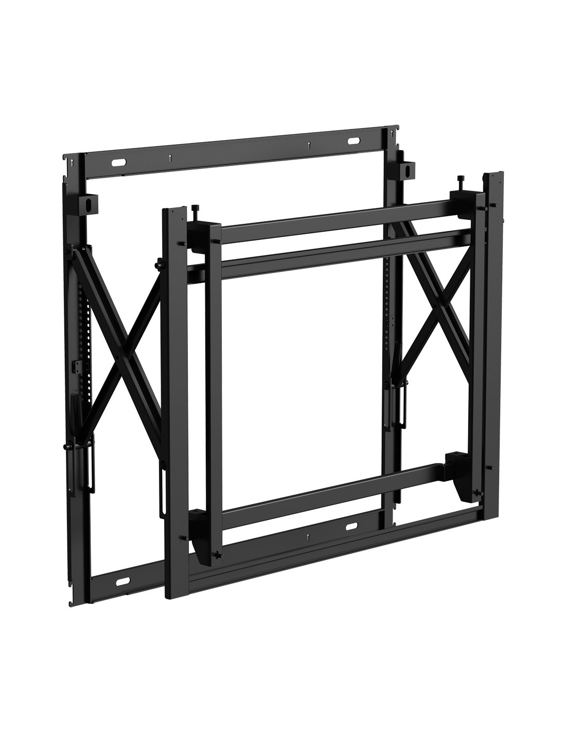 Los soportes de videowall son estructuras diseñadas para montar y sostener múltiples pantallas de forma segura y precisa. Su función principal es facilitar la instalación y el alineamiento de los monitores, garantizando una superficie visual continua y uniforme. Estos sistemas permiten ajustar la posición de cada pantalla con gran exactitud, simplificando las tareas de mantenimiento y asegurando una presentación profesional del videowall.