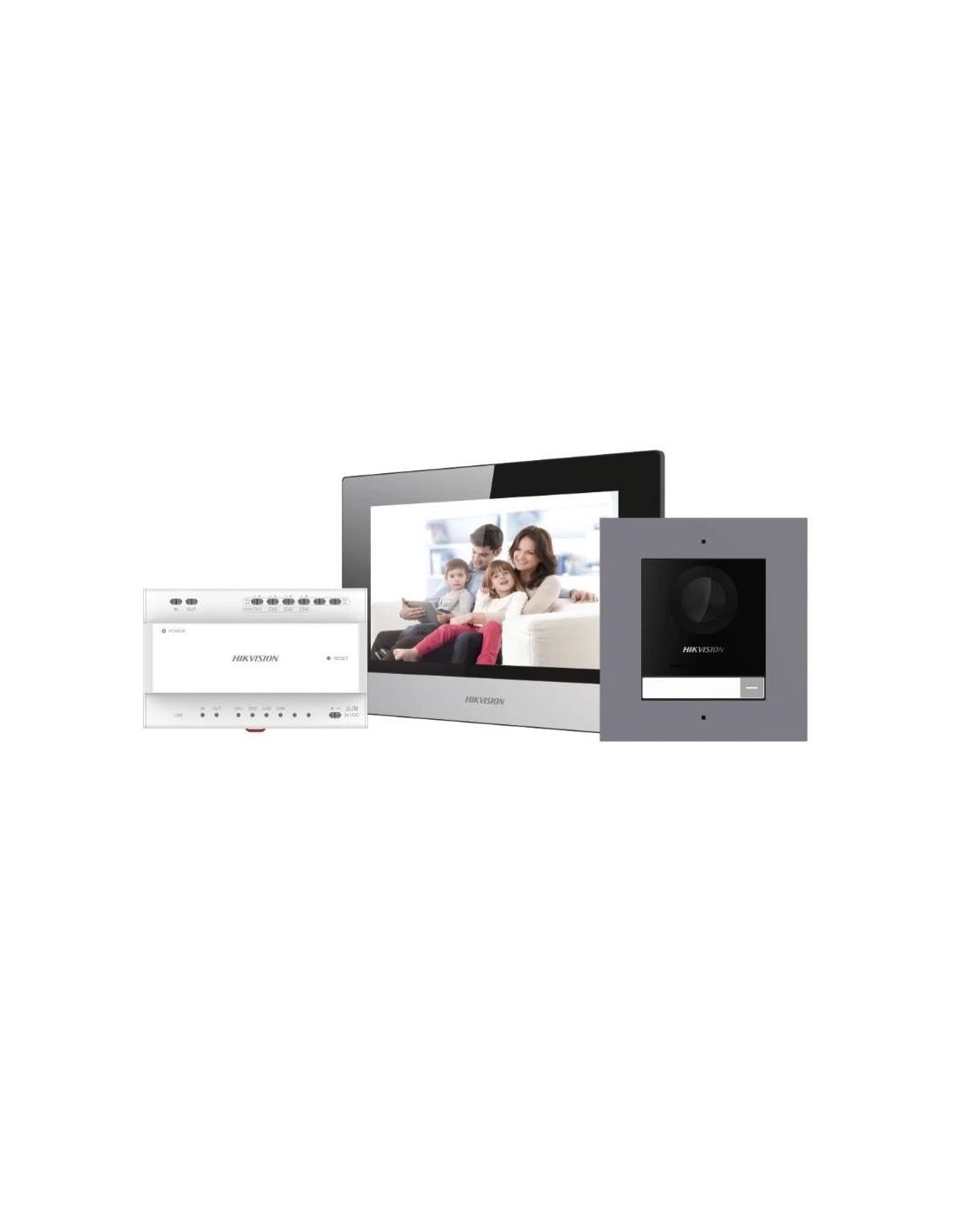 Kit de videoportero a 2 hilos HIKVISION compuesto por:. 1x videoportero 2 hilos DS-KD8003Y-IME2. 1x monitor 2 hilos DS-KH6320Y-WTE2. 1x conversor 2 hilos a IP de 4 puertos. 1x tarjeta TF de 16GB