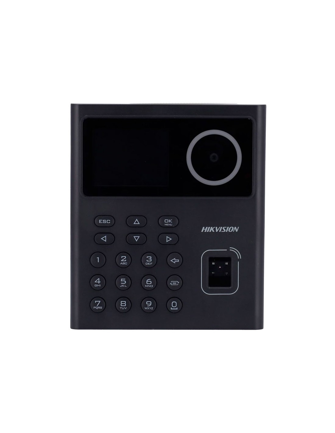 Terminal de control de accesos HIKVISION. Pantalla LCD de 2,4". Cámara de 2MP. Lector de tarjetas EM. Capacidad para 500 rostros y 1000 tarjetas. Registro de 100 000 eventos. Múltiples métodos de autenticación: facial, tarjeta, PIN, etc. Incorpora zumbador. Interfaz RJ45, USB. Tamper antisabotaje. Soporta protocolos ISAPI e ISUP 5.0. Configuración a través del cliente web