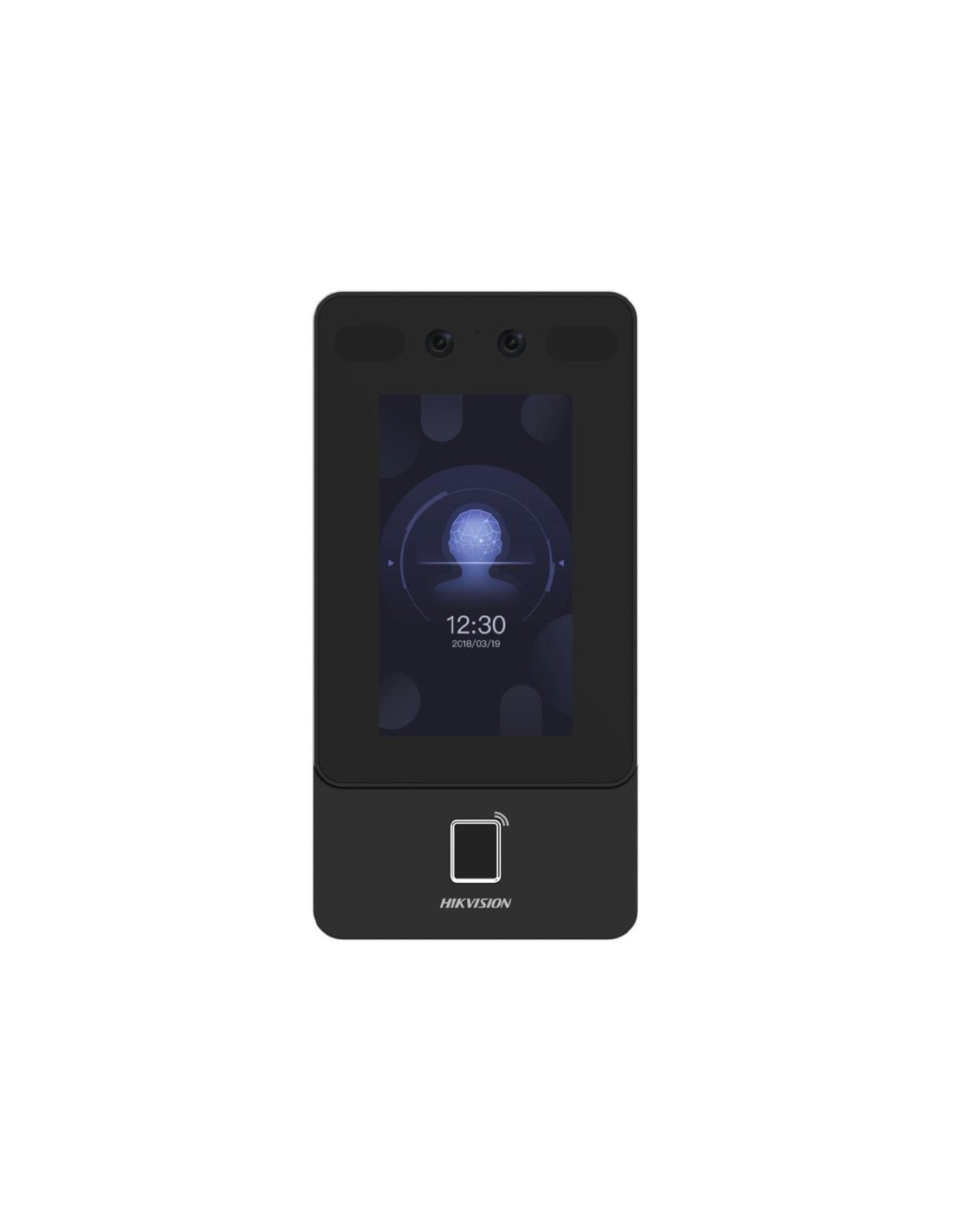 Terminal de control de accesos HIKVISION. Pantalla táctil LCD de 4,3". Cámara gran angular de 2MP. Lector Mifare 1. Capacidad para 1500 rostros, 3000 huellas y 3000 tarjetas. Registro de 150 000 eventos. Múltiples métodos de autenticación: facial, huella dactilar, tarjeta, PIN, etc. Audio bidireccional. Tamper antisabotaje. Soporta protocolos ISAPI e ISUP 5.0. Configuración a través del cliente web